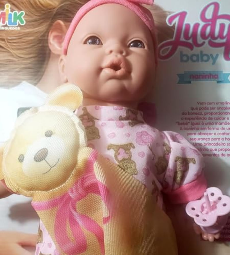 Vem com uma linda chupeta para acalmar a sua boneca corpinho macio , a naninha da boneca e em formato de urso.,