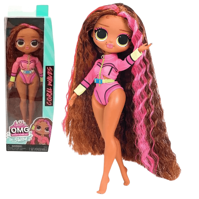 A nova linha LOL Surprise! OMG Swim apresenta nossas fashion doll de um jeito totalmente novo. Agora você pode escolher qual modelo deseja! A Coral QT é doce e meiga e sua roupa não poderia ser diferente, com lindos babados e seu longo cabelo ruivo. São 3 modelos para conhecer: Paradise Vip e Coastal Q.T.. A brincadeira vai ficar muito mais divertida com LOL Surprise! OMG Swim.