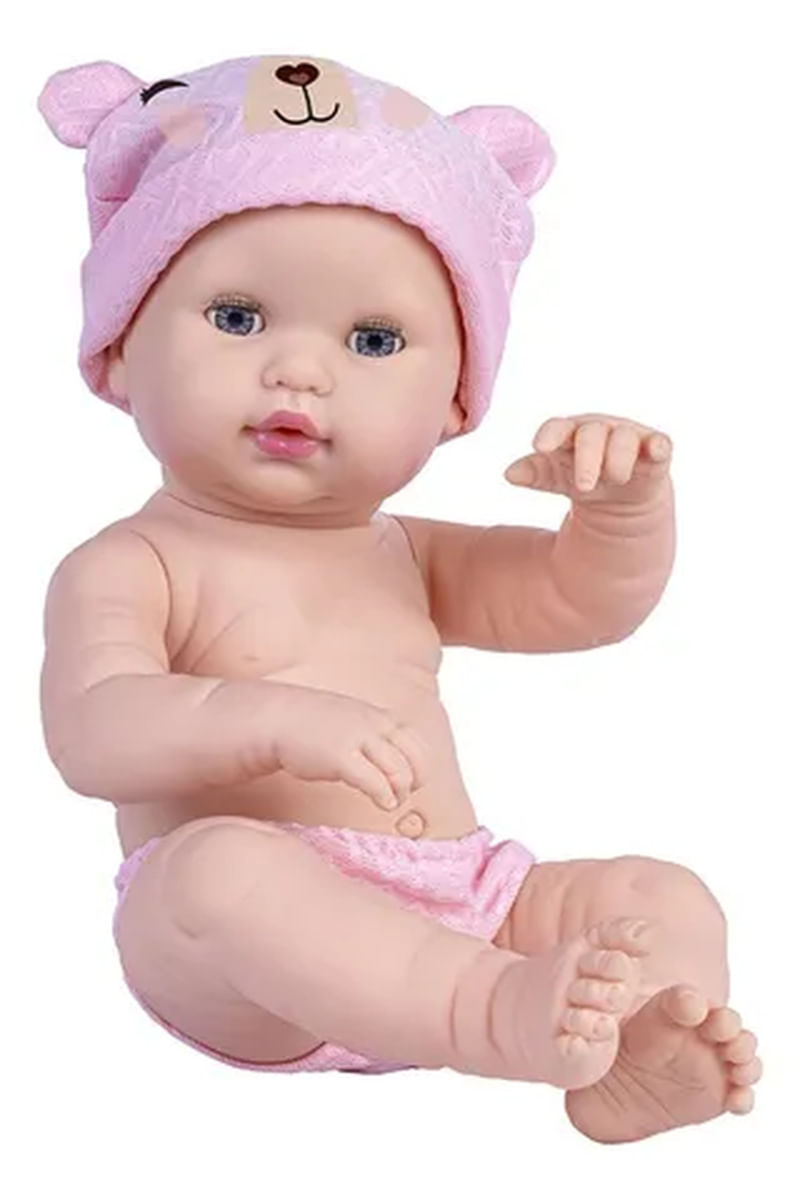 - Contém: 1 Boneca, 1 Chupeta com prendedor, 1 naninha, pulseira, carteirinha de vacina e certidão.