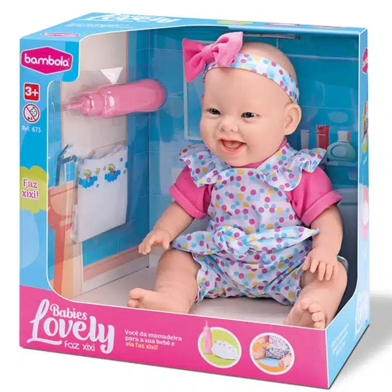 Descubra um mundo de diversão sem limites com a boneca Lovely Babies Faz Xixi! Prepare-se para experiências incríveis, onde cada momento é único. Com um design que estimula a criatividade e a imaginação, esta boneca será a companheira perfeita para as crianças explorarem novos horizontes. Acompanha uma mamadeira e uma fralda, basta alimentar sua bebê e ela irá fazer xixi. Não perca a oportunidade de proporcionar momentos inesquecíveis, esta boneca é a companheira perfeita para infinitas horas de diversão!