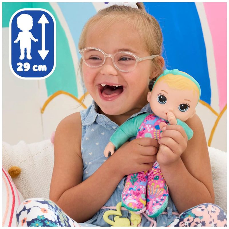 A boneca Baby Alive Soft n Cute é uma adorável primeira boneca, com um corpo macio perfeito para abraçar na hora de dormir. Ela vem com um lindo macacão com tema de animal e uma faixa de cabeça aqua com laço bem preso. Além disso, a boneca pode ser posada como um bebê com o polegar na boca. Com 27 cm de tamanho, ela é ideal para crianças de 18 meses ou mais. Acompanhando a boneca, há um acessório de mordedor que parece um urso.