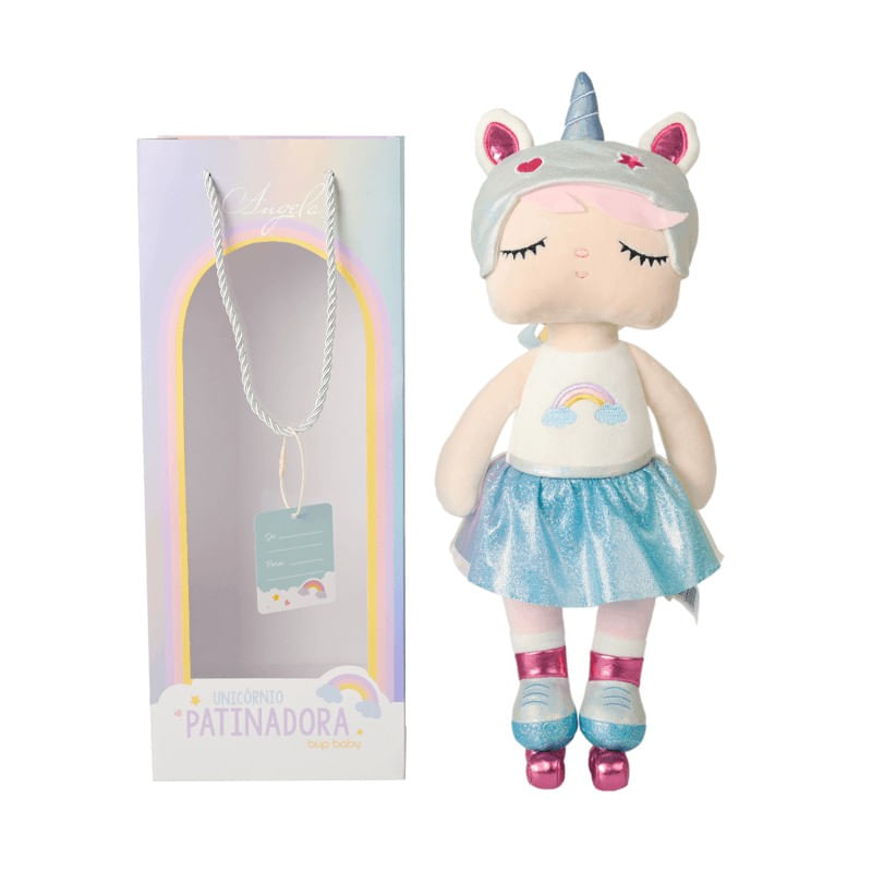 A Boneca Angela Unicórnio Patinadora é puro encanto! Com design delicado e cheio de personalidade, ela vem vestida com fantasia de unicórnio e patins, pronta para brincar ou decorar com estilo.