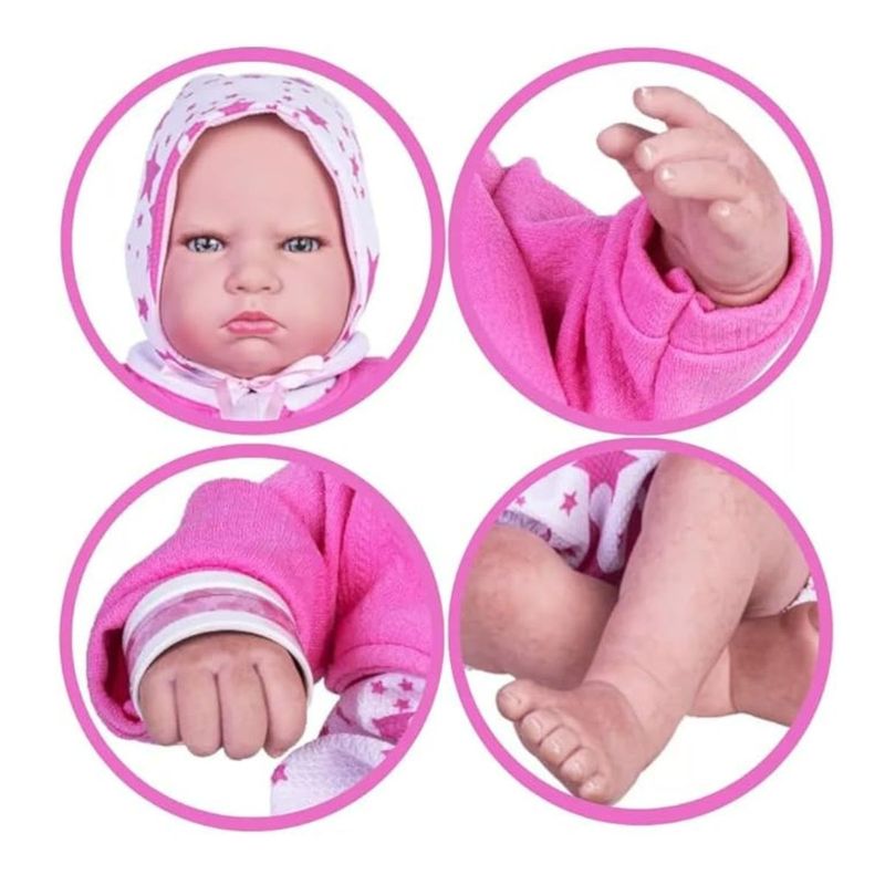 A Miya Cotiplás é igual a um bebezinho de verdade com um doce rostinho, igual um bebezinho de verdade, com detalhes faciais feitos à mão.