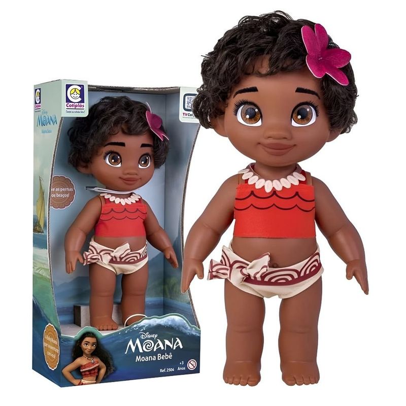 Esta adorável boneca Bebe Moana da nova coleção Animator da Cotiplás em parceria com a Disney, retrata a princesa polinésia quando criança, muito antes do início de sua grande aventura no oceano. A Boneca possui cabelos realistas e uma linda flor em seu cabelo, assim como no filme. Além disso, conta com uma linda roupinha e o seu corpinho é feito em vinil macio (o mesmo material utilizado nas bebes reborn), também possui membros articulaveis, podendo movimenta-la e deixar a brincadeira ainda mais legal. A boneca serve tanto para colecionadores quanto para crianças, podendo ser levada à água!