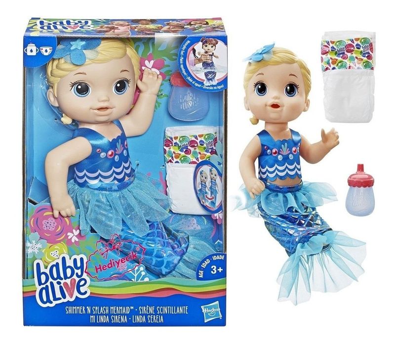 Bem vindo a AlfabayBaby Alive - Linda Sereia - LoiraA Baby Alive Linda Sereia é muito divertida dentro e fora da água! Basta puxar a sua saia para transformá-la em uma sereia com uma cauda cintilante e deslumbrante. Agora as crianças estão prontas para brincar na água o dia todo! Quando ela está fora da água, ela bebe na mamadeira e faz xixi.Inclui:01- boneca,01- roupa removível,01- cauda removível,01- mamadeira e,01- uma fraldaMarca: HasbroCERTIFICADO DE SEGURANDO INMETRO.Imagens meramente ilustrativas.Todas as informações divulgadas são de responsabilidade do fabricante/fornecedor.Reservamo-nos o direito de qualquer erro de digitação.