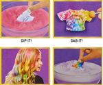 MERGULHE! Basta adicionar água aos 6 pós coloridos do arco-íris para criar aquarelas e depois mergulhar as roupas e o cabelo. Inclui 6 cores (rosa, laranja, amarelo, verde, azul e roxo) para fazer tantos designs coloridos. É tão fácil!