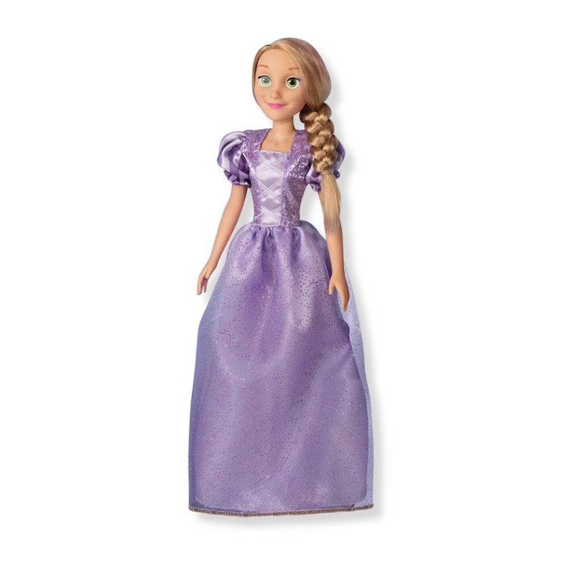 Sobre este item: A Princesa Rapunzel estÃÂá vestindo um lindo e longo vestido na cor Rosa, com detalhes estampados e mangas curtas tipo bufante! Tem cabelos longos e com uma linda e imensa tranÃÂça! Usa um lindo par de sapatinhos na cor rosa! A expressÃÂão da face ÃÂé marcante!! Grandes olhos verdes e lÃÂábios rosados! Pintura da face com tinta totalmente atÃÂóxica. DimensÃÂões do produto: âÃÂÃÂ8 x 18,5 x 55 cm