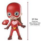 O produto possui 27 cm, acompanha a pedra do poder que o aventureira vermelha utiliza para virar super heroína.
