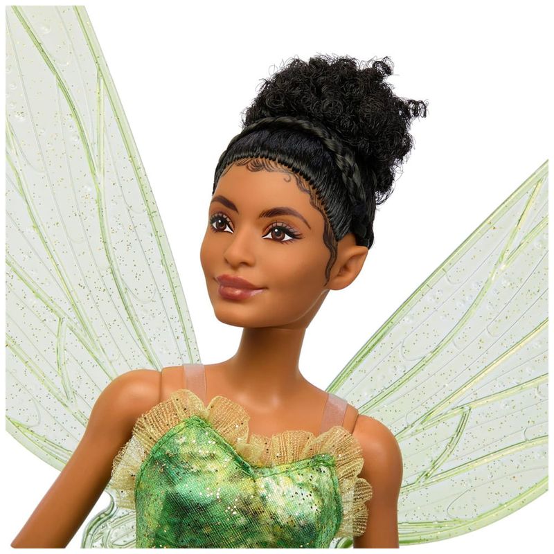 Esta boneca Tinker Bell é inspirada na personagem do filme da Disney, Peter Pan Wendy. Com um vestido verde característico, asas brilhantes e ajustáveis, e um corpo totalmente articulável, esta boneca da moda é perfeita para aventuras na Terra do Nunca. Além disso, ela tem cabelo escovável com detalhes para mais diversão.