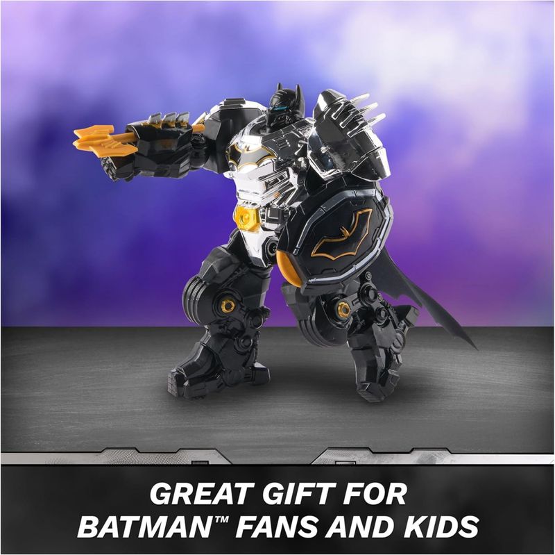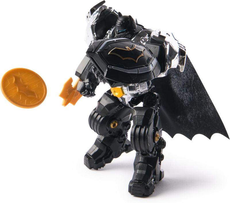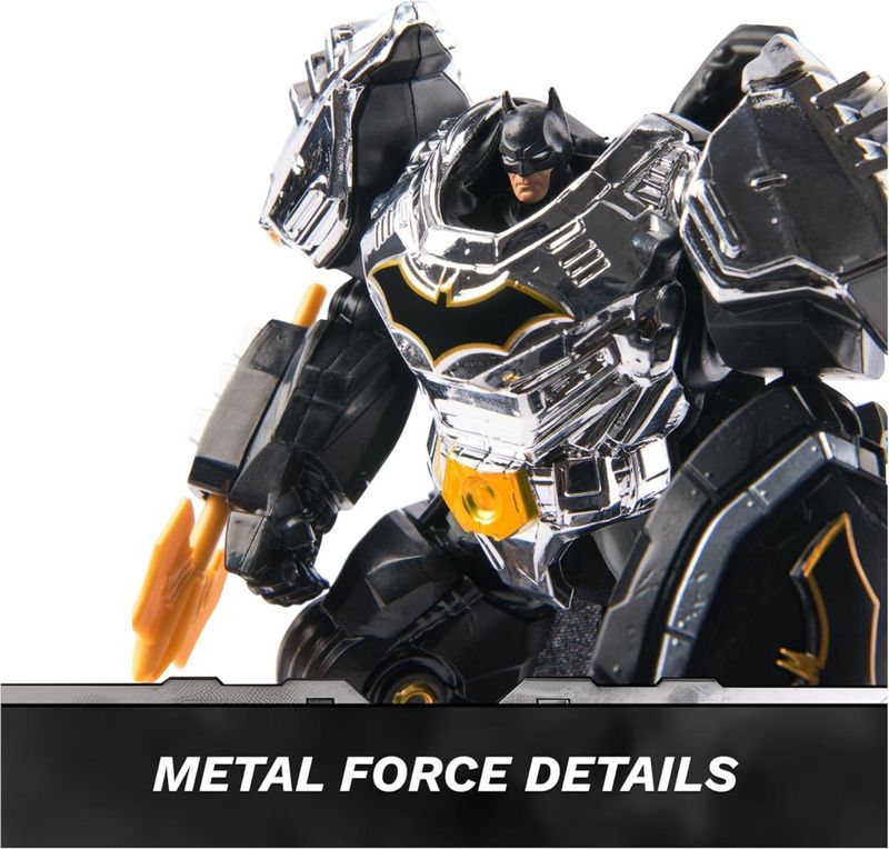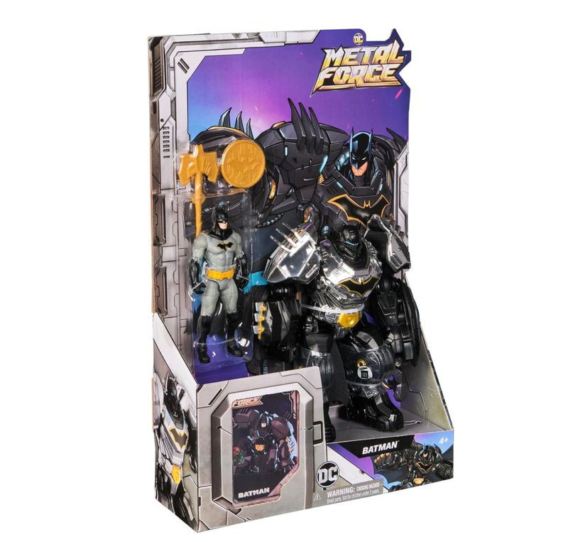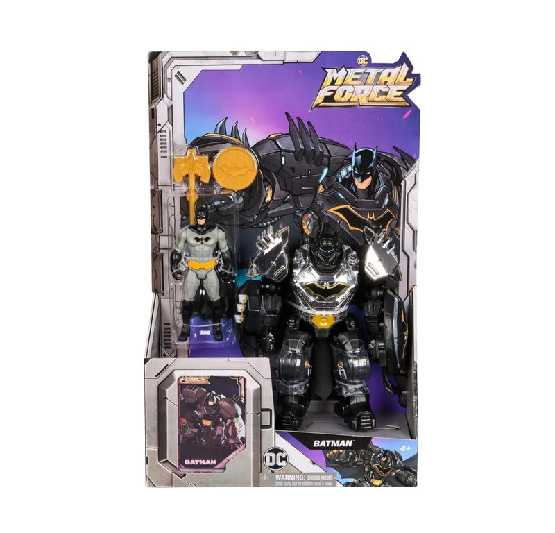 Boneco Articulado Batman + Armadura Coleção: Metal Force. Tamanho: Batman - 10 cm. Armadura - 15 cm. Entre em ação com o Batman Metal Force e sinta o poder do Cavaleiro das Trevas em sua forma mais épica! Com design inspirado nas armaduras de combate, este conjunto traz um Batman articulado e uma armadura metálica impressionante que o transforma em um verdadeiro guerreiro de alta tecnologia. A armadura possui acabamento brilhante, detalhes dourados e acessórios exclusivos, como machado e lançador de disco, prontos para enfrentar qualquer vilão de Gotham. Acompanha ainda uma carta colecionável com base expositora para deixar sua coleção ainda mais completa.