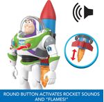 Boneco Buzz Lightyear Com Foguete Marca: Mattel Coleção: Toy Story Tamanho: Aproximadamente 27 cm. Esta figura de ação do Buzz com foguete, de 27 cm de altura, traz mais de 35 frases e sons do filme, pronta para aventuras em grande estilo de Toy Story! Buzz Lightyear é posável, com seu traje icônico de Patrulheiro Espacial e visor removível. O grande foguete nas costas remete à cena emocionante do resgate de Woody. As "chamas" destacáveis na parte inferior do foguete impulsionam a brincadeira e têm um reset manual. Um botão no peito ativa frases, sons e o efeito de chama. Um presente incrível para fãs a partir de 4 anos! As cores e as decorações podem variar.