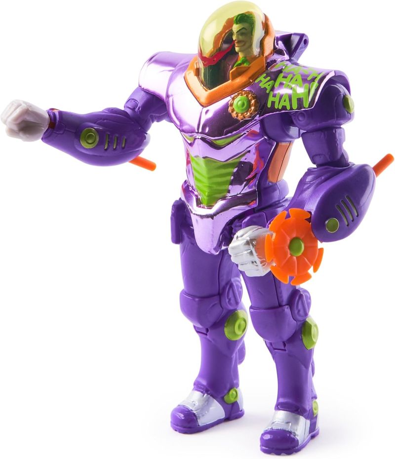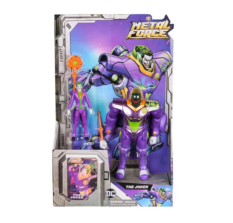 Boneco Articulado Coringa + Armadura Coleção: Metal Force. Tamanho: Coringa - 10 cm. Armadura - 15 cm. Desperte a imaginação com o Boneco Articulado Coringa + Armadura da linha Metal Force, da Spin Master. Inspirado nos icônicos personagens da DC Comics, este conjunto oferece uma experiência única para fãs e colecionadores. Com detalhes fiéis ao visual do Coringa, o boneco traz articulações que garantem poses dinâmicas e realistas, enquanto a armadura removível adiciona um toque de poder e proteção, elevando o universo do vilão a outro nível.