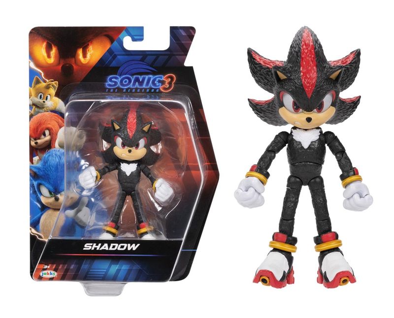 Boneco Articulado Shadow Marca: Jakks Pacific. Coleção: Sonic 3 - The Hedgehog. Liberte o poder do ouriço mais enigmático da franquia com a figura articulada do Shadow, inspirada em Sonic 3 – O Filme. Com cerca de 13 cm de altura, o boneco apresenta textura detalhada, cores marcantes em preto e vermelho e a clássica expressão séria do personagem. A figura conta com vários pontos de articulação, permitindo criar poses intensas e recriar momentos icônicos do filme. Perfeito para colecionadores e fãs que querem adicionar mais atitude e força à sua coleção do universo Sonic!