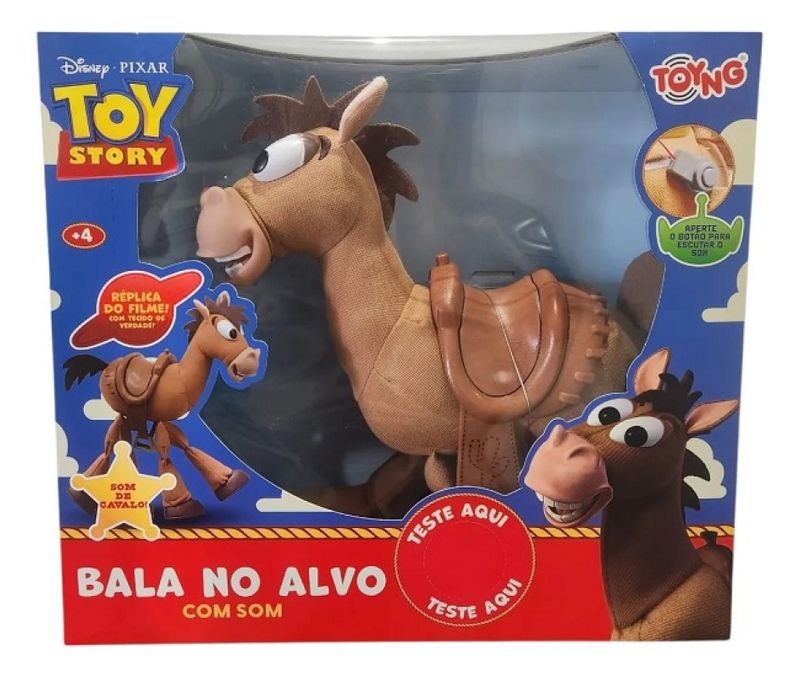Boneco Bala no Alvo Filme Toy Story 40 Cm Tecido Com Som e Vibração - Toyng - É uma forma prática de levar o personagem Bala no Alvo para a brincadeira com mais interação e presença no dia a dia - O recurso de som e vibração deixa a experiência mais envolvente para recriar cenas e aventuras do universo Toy Story - O tamanho grande ajuda a dar mais destaque ao personagem nas brincadeiras e também na coleção - Funciona bem para brincar, presentear e ampliar a coleção com um personagem muito querido da franquia - É uma boa escolha para quem busca um Bala no Alvo original com visual marcante, toque macio e proposta interativa. - Medidas aproximadas de 40 cm x 36 cm Idade acima de 4 anos Contem 1 cavalo pelúcia Tamanho da embalagem 41 x 36x 14 cm Fabricante Toyng