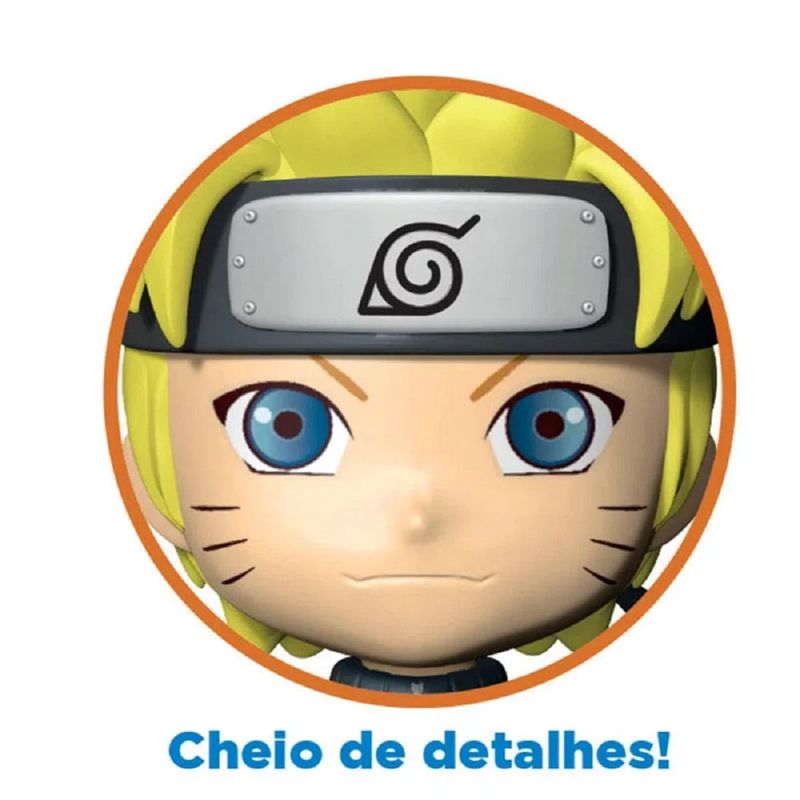Boneco Naruto Uzumaki Chibi com 14 cm de altura, articulações nos braços, versão estilizada para colecionadores.
