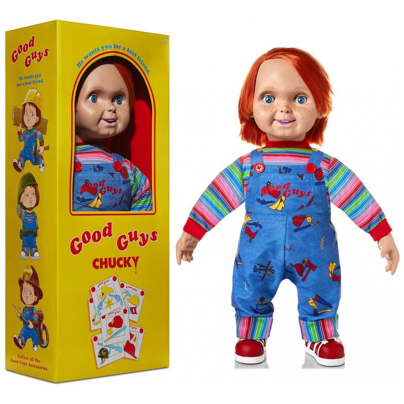 Com olhos e características faciais s e melhorados, Chucky parece mais real do que nunca Com 60 centímetros de altura, ele é perfeito para colocar em qualquer lugar da sua casa.