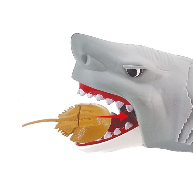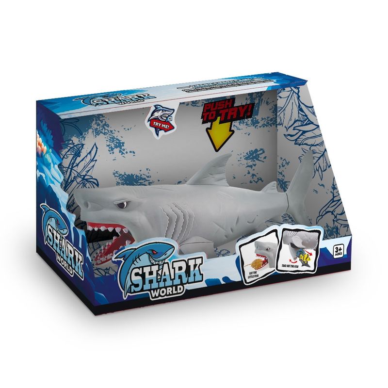 Domine as profundezas da diversão com o Shark Attack Mordida do Tubarão! Transforme a diversão em uma emocionante caça submarina! Aperte a barbatana e faça o tubarão devorar os peixes! As miniaturas ficam armazenadas na barriga e podem ser resgatadas para recomeçar a diversão. O tubarão come os peixes com som de tubarão! Utiliza 3 AG13 inclusas.