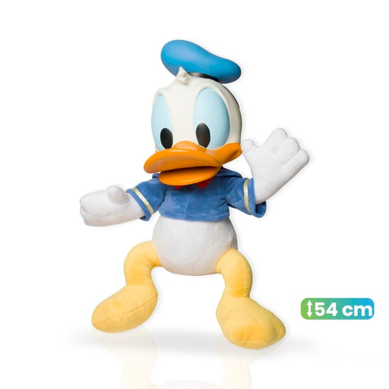 Boneco do Pato Donald da Disney com corpo de tecido e cabeça de vinil com 54 cm , a criançada vai se divertir com esse boneco super macio de seu personagem favorito.