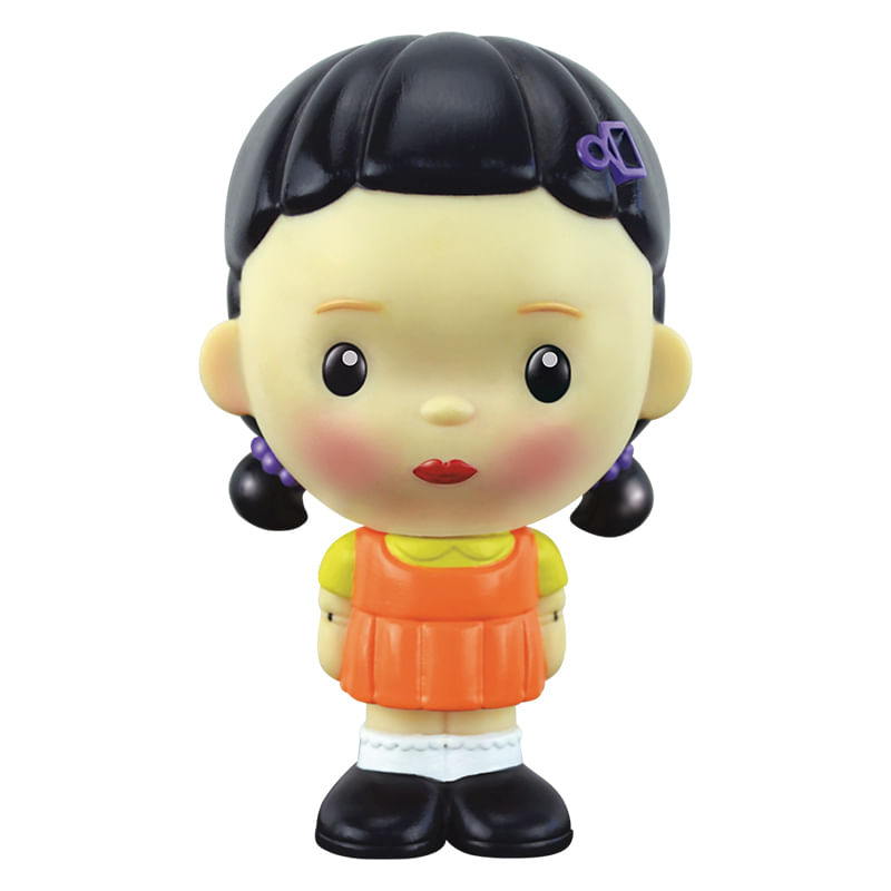 Prepare-se para levar para casa uma das figuras mais marcantes de Squid Game ! A Boneca Young Hee da FandomBox é uma edição exclusiva que vai adicionar um toque de suspense e mistério à sua coleção. Fiel ao personagem que se tornou um ícone da série, essa peça traz todos os detalhes do assustador e enigmático robô da infância, que marcou uma das cenas mais intensas de Round 6