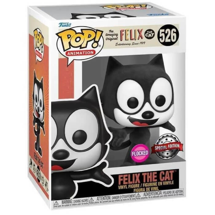 Boneco Funko Pop do Gato Felix (Felix The Cat no original) em edição especial e limitada Flocked. Produzido em vinil de alta qualidade, a figura de Felix The Cat tem 9,5 cm de altura, produzido no estilo Pop, que conquistou o coração e as estantes de todos os amantes de filmes, séries, animes, quadrinhos e muito mais.