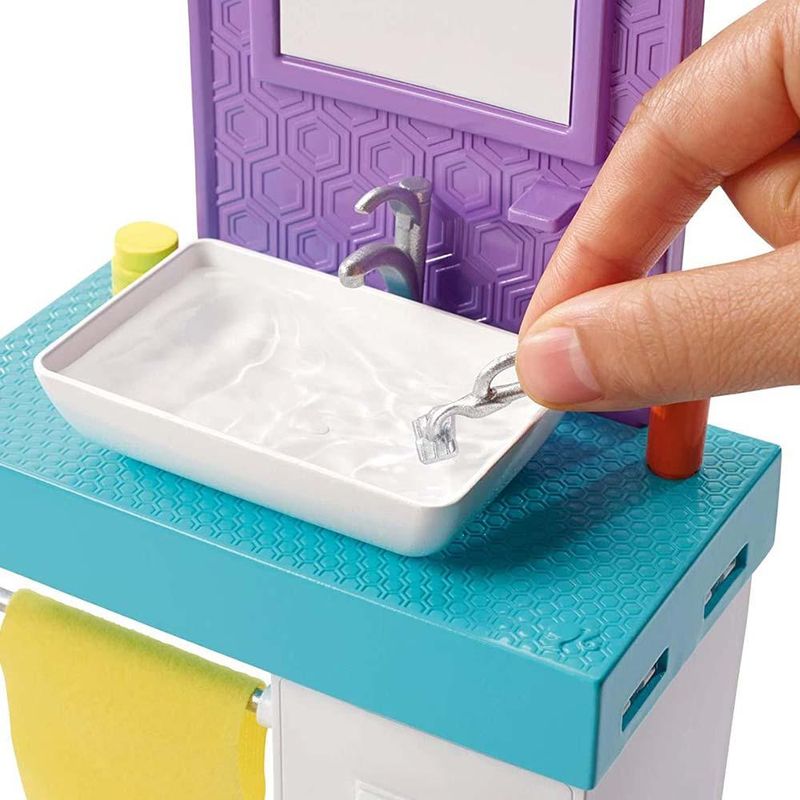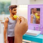 Com o Boneco Ken Gabinete Banheiro - Acessorios e Moveis - Barbie - Mattel as criancas podem criar diversas historias sobre cuidados e higiene. O Boneco Ken esta pronto para se barbear neste incrivel banheiro. O brinquedo vem com gabinete com pia de banheiro e acessorios que permitem que as criancas encenem historias divertidas. O boneco Ken tem um sistema inovador de mudanca de cor ativada pela agua para fazer com que sua barba apareca e desapareca. Tambem conta com lamina de barbear e uma toalha de pano permitem que as criancas mergulhem na diversao. INFORMACOES: • Produto: Boneco Ken Barbear e Banheiro • Colecao: Acessorios e Moveis Barbie - Mattel • Marca: Mattel • Material / Composicao: Plastico • Recomendacao: para criancas a partir de 3 anos de idade AVISO IMPORTANTE: • As imagens sao meramente ilustrativas. As cores e estampas dos produtos podem ter variacoes. As informacoes sao de responsabilidade do fabricante ou fornecedor.
