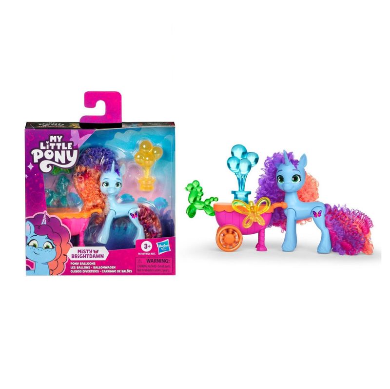 Boneco My Little Pony Misty BrightdawnMarca: HasbroColeção: Carrinho de BalõesTamanho: Aproximadamente 8 cm de altura.Muitas aventuras em qualquer lugar com o brinquedo My Little Pony Misty Brightdawn Carrinho de Balões! Este kit My Little Pony vem com figura articulada e 4 acessórios. As crianças podem colocar a Misty no carrinho e imaginá-la passeando nas ruas de Maretime Bay! Os balões podem ser encaixados na pata de Misty ou no carrinho da Misty. O carrinho tem 2 rodas que giram para muitas aventuras criativas. A figura possui braços, pernas e cabeça articulados para poses no chão ou no carrinho. Possui crina e cauda macias e coloridas para brincar e pentear. A figura possui aproximadamente 8 cm de altura e vem com a cutie mark de borboleta e cabelo multicolorido como no desenho.*Cores dos acessórios podem variar, sujeito a disponibilidade.