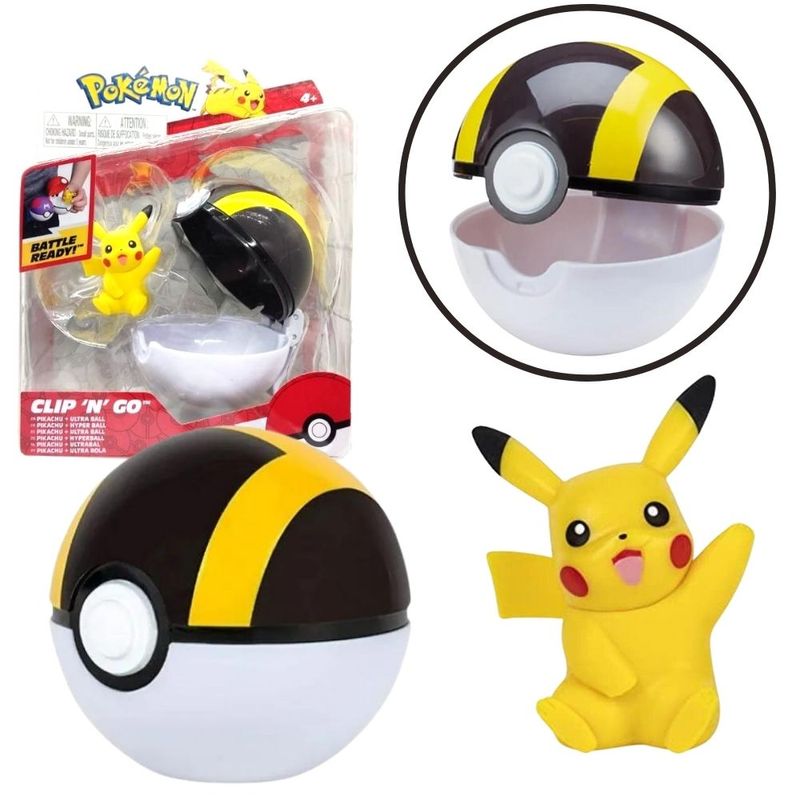 ---- Boneco Pikachu 5 cm e Ultra Ball 7 cm - Figura Pokemon e Pokebola Clip N Go - WCT Sunny - Jazwares ----