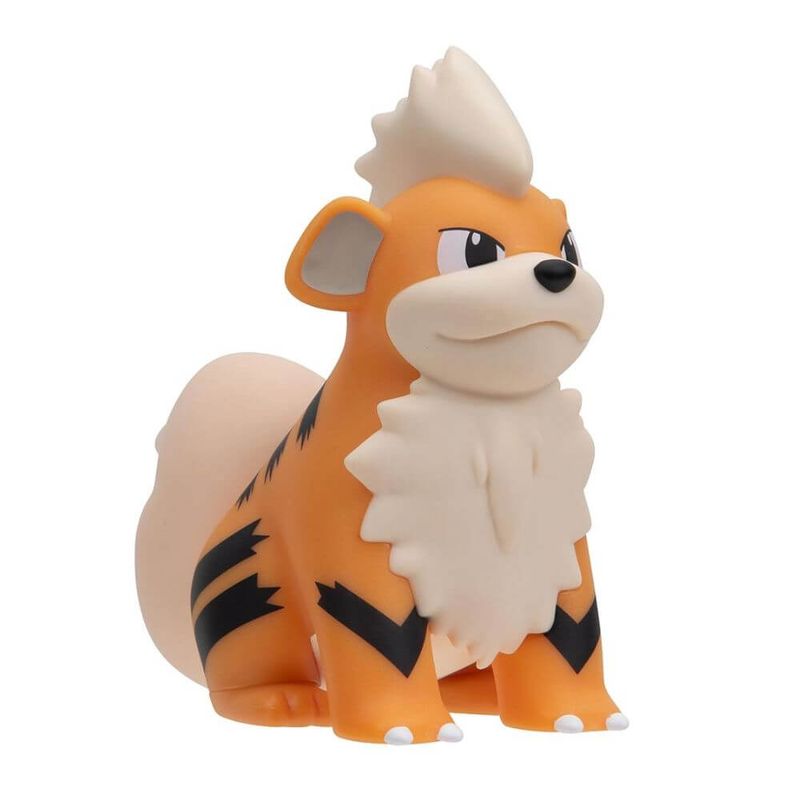 Growlithe em uma figura de 4 polegadas feita em vinil de alta qualidade. Design fiel ao visual da série animada Pokémon, com detalhes autênticos que representam sua natureza leal e energética do tipo Fogo. Ideal para exibição em mesas, prateleiras ou espaços temáticos. Parte da linha Pokémon Select Vinyl Figures, que inclui outros Pokémon em tamanho e acabamento semelhantes.