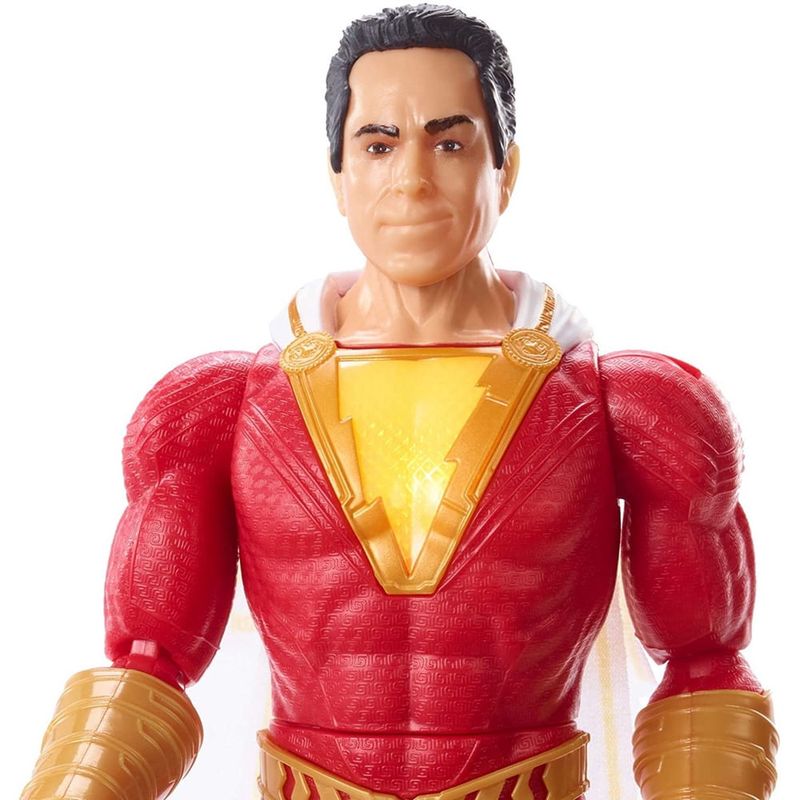 Com a figura de ação - shazam - luzes e sons - dc comics - mattel as crianças irão se sentir como verdadeiros heróis