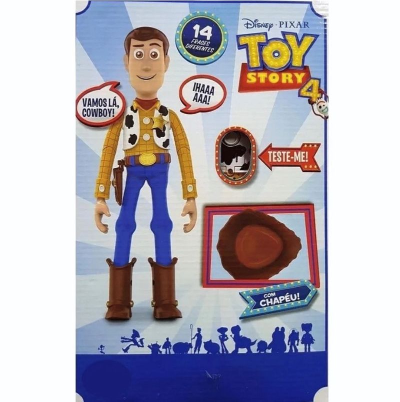 Woody Articulado com 14 Frases em Português, com a Voz do Personagem. Acomoanha Chapéu. o Boneco Mede Aproximadamente 28cm de Altura.