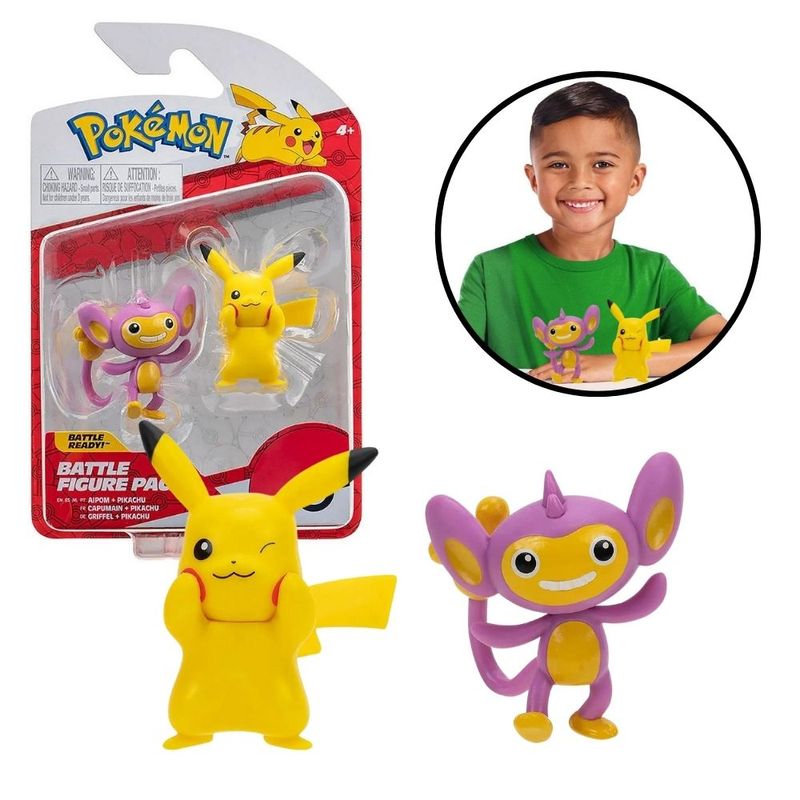 --- Bonecos Pokémon - Pack 2 Figuras De Ação Aipom e Pikachu - Battle Ready Figure Set - Jazwares WCT Sunny ---