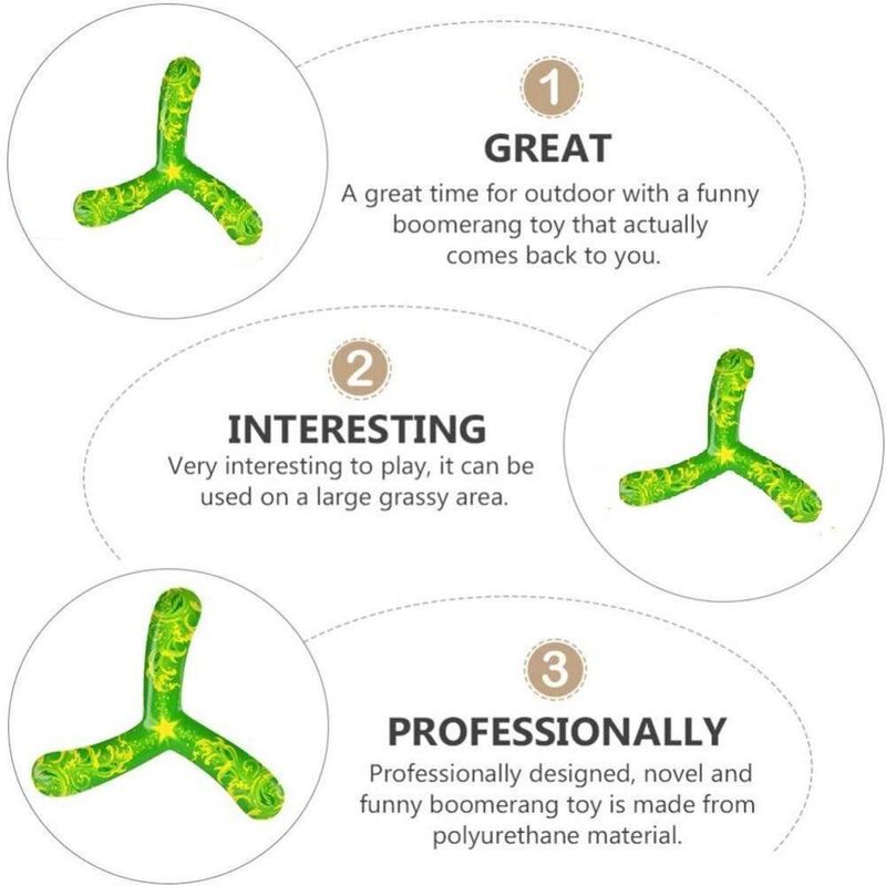 O bumerangue voa a média distância (até 15 metros) em qualquer lugar, modelo muito leve e fácil de jogar, utilizado tanto por crianças ou adultos como também por profissionais e amadores. Cor vibrante, ágil e material altamente resistente.