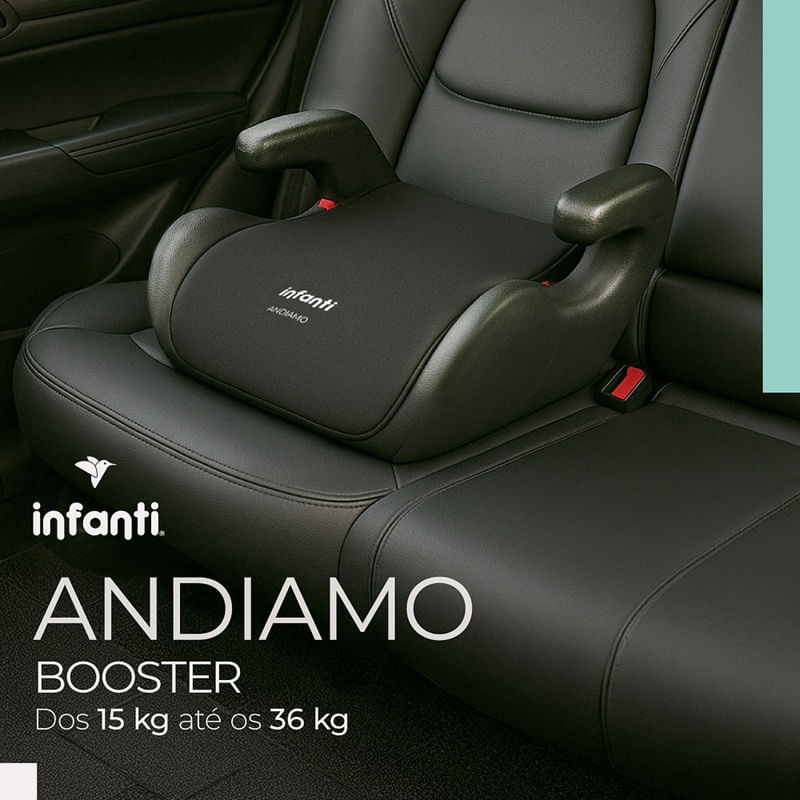 O Booster Andiamo acompanha a nova fase do seu pequeno — aquela em que ele já cresceu, mas ainda precisa da elevação certa para viajar em segurança. Garantindo o conforto que toda criança merece e a tranquilidade que toda família precisa.