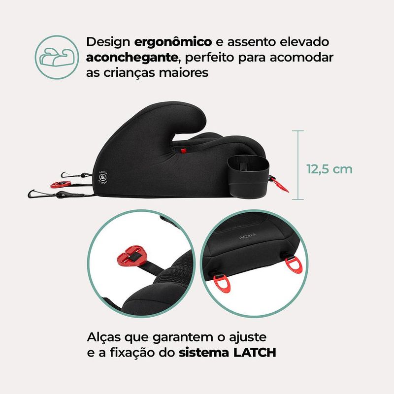 O Piazzi é um assento de elevação que acolhe crianças de 15 a 36 kg com estrutura ergonômica, fixação LATCH e porta-copos integrado. Quando chega a hora de deixar a cadeirinha, a criança ganha mais autonomia — e o cuidado segue presente em cada trajeto. O Piazzi foi criado para essa nova fase, oferecendo a segurança que os pequenos ainda precisam, dos 15 aos 36 kg. Conheça mais sobre o Booster Piazzi -Fixação com sistema LATCH que traz mais segurança e tranquilidade em todos os trajetos.