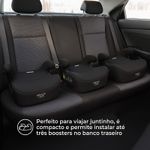 Perfeito para viajar juntinho, é compacto e permite instalar até três boosters no banco traseiro.