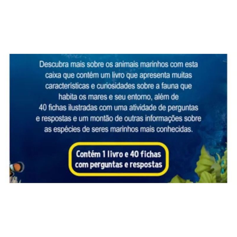 Descubra mais sobre os animais marinhos com esta caixa que contém um livro que apresenta muitas características e curiosidades sobre a fauna que habita os mares e seu entorno, além de 40 fichas ilustradas com uma atividade de perguntas e respostas e um montão de outras informações sobre as espécies de seres marinhos mais conhecidas.