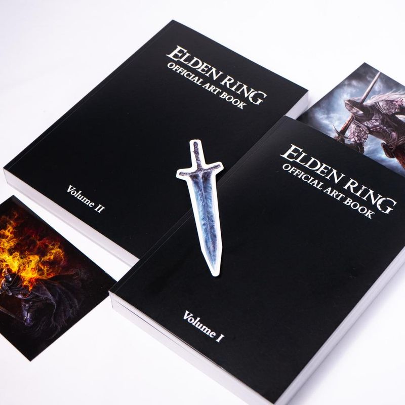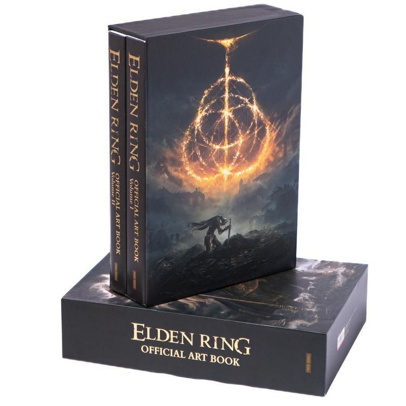Box contendo os volumes 1 e 2 de Elden Ring Artbook."Elden Ring” deslumbra jogadores do mundo inteiro com seu universo impressionante desde o seu lançamento. E os muitos trabalhos de arte meticulosamente elaborados destes dois Artbooks — áreas vastas e diversificadas, masmorras gigantescas a serem desbravadas, inimigos aterrorizantes, porém belos, e armas — evocam lembranças das Terras Intermédias.