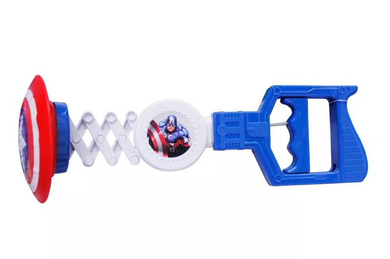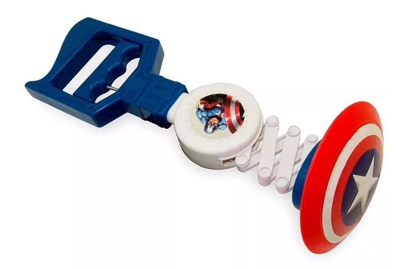 Os meninos irao se divertir de montao com este braco bionico Vai e Vem Capitao America Toyng. Ele e feito em plastico com formato das maos dos super herois, basta puxar o gatilho para estender e soltar para retrair. Chame os amiguinhos para essa brincadeira de vai e vem!