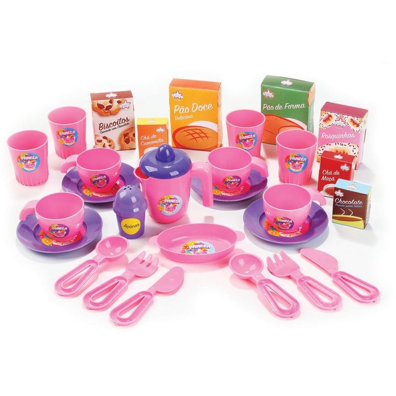 O Meu Chazinho da Big Star faz com que a criança desenvolva o senso de interação social, participação, imaginação e criatividade por meio de uma das brincadeiras clássicas da infância (tomar chá com a família ou amigas). Conteúdo: 1 jarra, 7 caixinha s, 4 pires, 4 xicaras, 1 açucareiro, 4 copos, 1 tolha de papel, 2 colheres, 2 facas, 2 garfos e 1 travessa. O produto é elaborado/produzido com materiais adequados à criança, estando adequado/certificado pelo Inmetro. Indicado para crianças acima de 03 anos.