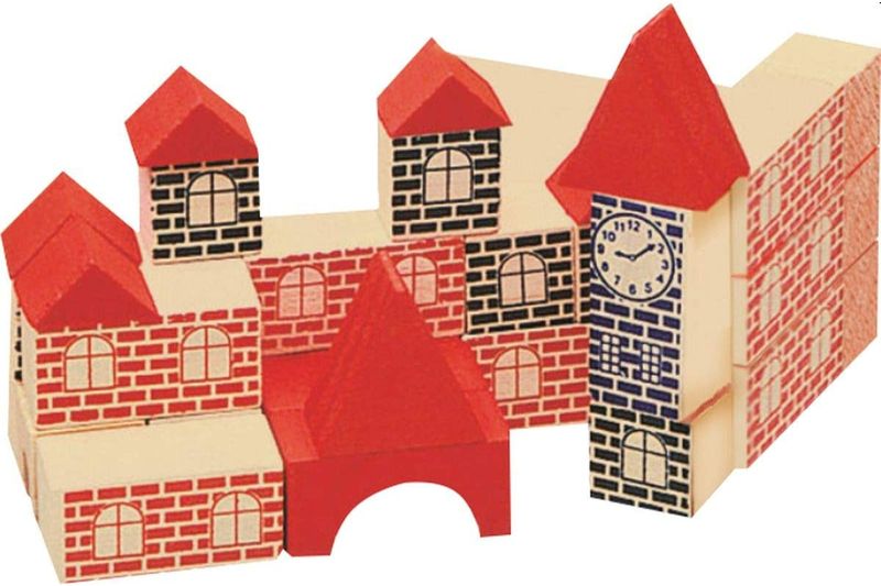 A criança desenvolve a percepção e o raciocínio montando casas com blocos coloridos. Para seu filho aprender brincando.