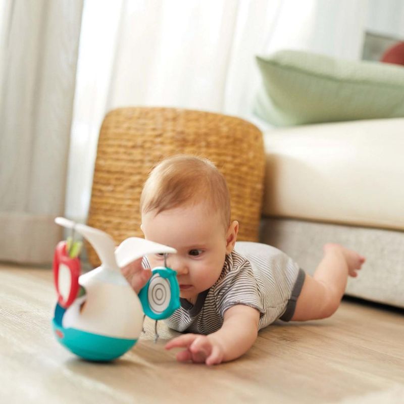estímulo para o 'tummy time', e depois como estímulo para o bebê permanecer sentado a