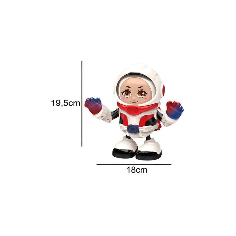 Prepare-se para uma aventura intergaláctica com o Astronauta Robô Dançarino, um brinquedo incrível que vai encantar crianças e adultos! Ele dança, acende luzes coloridas despertam a curiosidade e a imaginação dos exploradores mirins. -Ao interagir com o robô, a criança desenvolve habilidades motoras finas e grossas, aprendendo a controlar seus movimentos e aprimorando sua coordenação. - Ideal para brincar com amigos e familiares, o astronauta robô estimula o compartilhamento, a cooperação e a interação social entre as crianças. -Anda, dança, acende luzes e emite sons. -Cores: Vibrantes e chamativas, que atraem a atenção da criança e estimulam sua percepção visual. -Moderno e divertido, com detalhes que lembram um astronauta de verdade, como seu capacete e sua roupa espacial. -Design de Astronauta – Visual moderno que encanta os fãs do espaço e da tecnologia. -O robô gira, mexe os braços e desliza enquanto dança! -Iluminação vibrante para uma experiência futurista e envolvente. Especificações Técnicas: - Modelo: Astronauta Robô Dançarino - Material: Plástico ABS e Componentes Elétricos - Dimensões Aprox.: 19,5cm (ALTURA) x 18cm (LARGURA) - Fonte de Alimentação: 3 Pilhas AA (NÃO INCLUSAS) - Com luz, som e movimento. - O capacete do astronauta abaixa - Botão traseiro com função liga/desliga. Itens Inclusos: - 01x Astronauta Dançarino