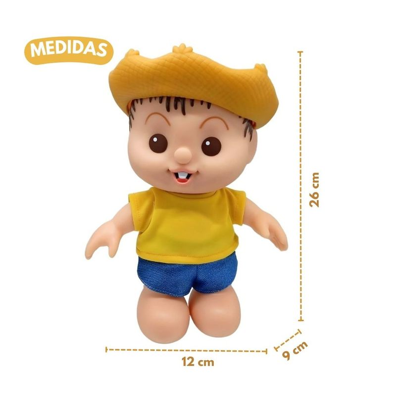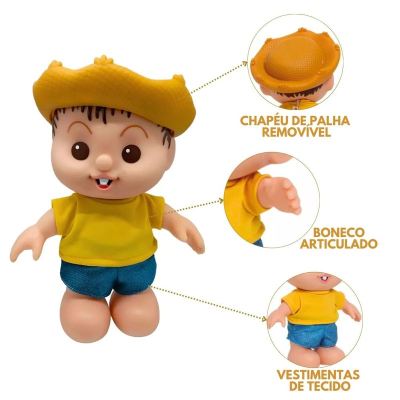 - Evite armazenar o boneco em ambientes úmidos ou em contato com superfícies que possam transferir cor ou sujeira. Deixe a imaginação das crianças correr solta com o boneco do Chico Bento! Ele vem sempre sorridente, vestindo uma camiseta amarela, shorts azuis e o clássico chapéu de palha. Ideal para brincar e criar histórias, esse boneco vai encantar e divertir os pequenos. Garanta esse companheiro para as aventuras do dia a dia!