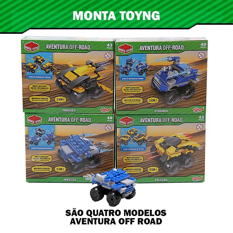 Você já imaginou como seria montar seu próprio carrinho de aventuras? Com o carrinho aventura off-road, seu filho não apenas brinca, ele cria, com 43 peças e 3 opções diferentes de montagem, o carrinho é uma experiência completa que mistura diversão, aprendizado e muita ação. Feito para crianças acima de 4 anos, vai além de uma simples brincadeira - ele ensina conceitos básicos de engenharia, desenvolve a coordenação motora e a criatividade. Além disso, é movido à fricção, sem necessidade de baterias, ele corre pela casa com apenas um toque, garantindo horas de diversão sem parar. O carrinho é fabricado com material de qualidade, certificado e seguro para crianças, sem peças que representem riscos. A montagem é feita de forma simples, e o brinquedo é resistente. Além de muita diversão, seu filho vai desenvolver habilidades de coordenação motora, raciocínio lógico e aprender noções básicas de como montar estruturas, trabalhando também a paciência e concentração. Movido à fricção, ou seja, é só puxar, soltar e ver ele correr. Nada de baterias ou recargas, garantindo diversão sem interrupções. Material: ABS INMETRO: 002000/2021 Indicação: + 4 anos de idade Composição: 43 peças