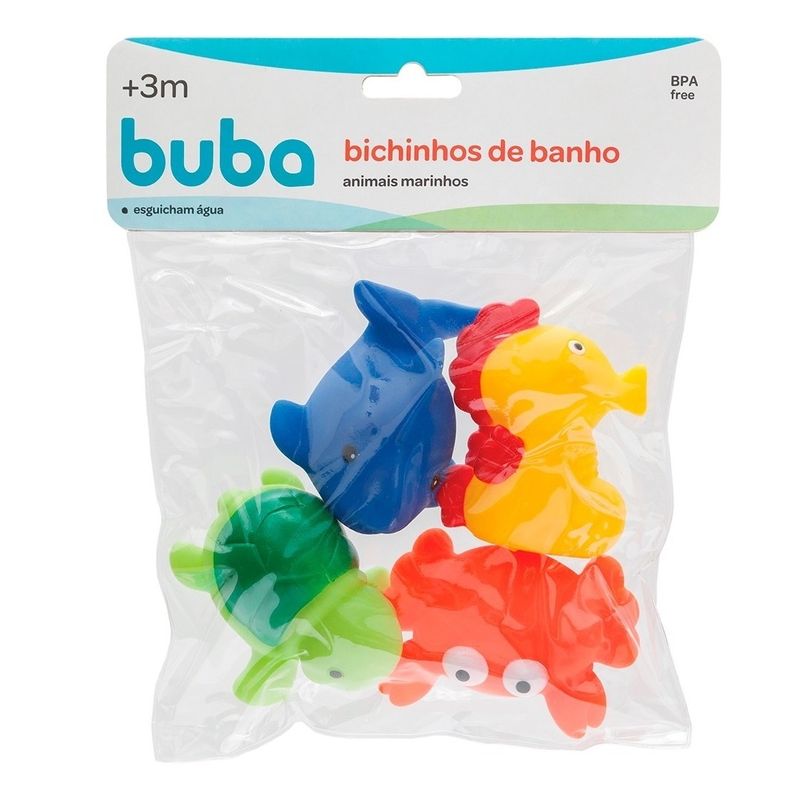 A hora do banho do seu bebê ficará mais divertida e alegre com essa turma Bichinhos para Banho da Buba. Eles são super macios e esguicham água, para isso, basta apertá-los embaixo da água e depois soltar. É macio, lavável e não tóxico.