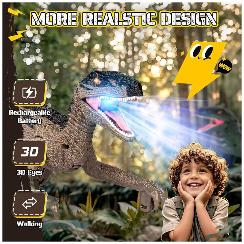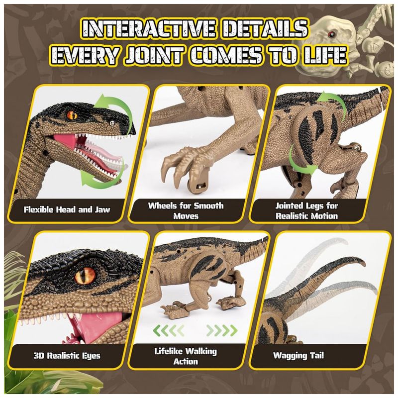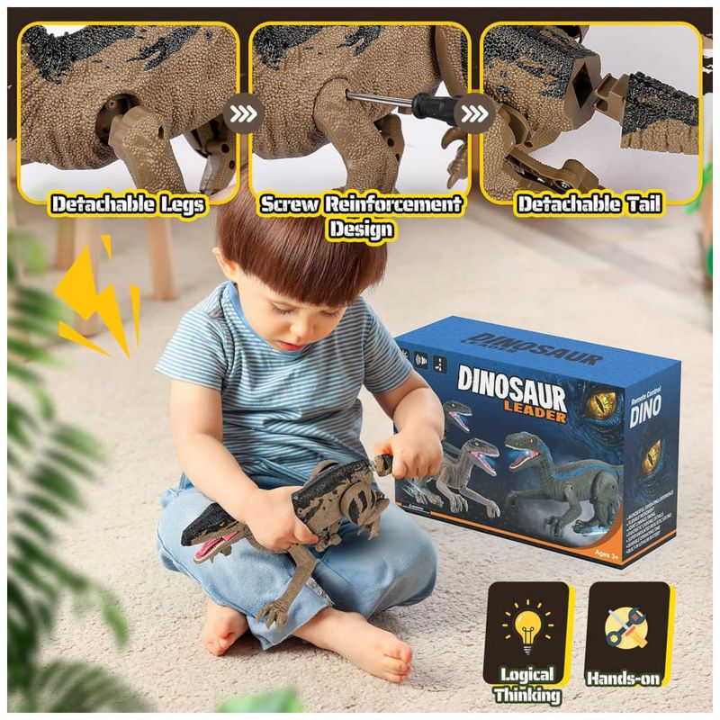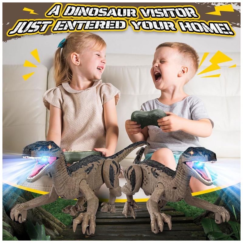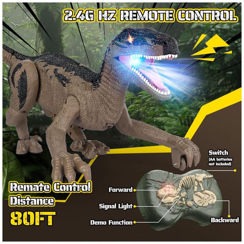 Viva uma experiência de aventura com o Toque de um Botão! Este dinossauro de controle remoto possui um modo de demonstração automático. Basta pressionar um botão para vê-lo andar e começar a rugir! Com três efeitos sonoros realistas, ele traz o mundo pré-histórico à vida, criando uma experiência de jogo imersiva que desperta a curiosidade e a imaginação das crianças. Com uma aparência realista e movimento autêntico, este dinossauro velociraptor é projetado com texturas detalhadas, olhos 3D e uma postura de caminhada natural, trazendo os dinossauros da era jurássica de volta à vida. O movimento suave e os detalhes vívidos imergem as crianças em um mundo de aventura pré-histórica. Divertido e educativo, esta é uma experiência prática e envolvente para as crianças. Elas podem montar o dinossauro sozinhas, incluindo a fixação do rabo e garras dianteiras, promovendo o desenvolvimento da coordenação mão-olho, pensamento lógico e consciência espacial. Com uma bateria recarregável de alta capacidade, este brinquedo de dinossauro robô está pronto para longas horas de diversão sem trocas frequentes de bateria. Aproveite aventuras mais longas e um uso conveniente em ambientes internos ou externos, sempre pronto para a diversão. O controle remoto utiliza 2 pilhas AA (não incluídas), permitindo um controle suave e responsivo para uma emocionante brincadeira de dinossauros. Ideal como presente para crianças que adoram dinossauros, este brinquedo possui tecnologia de controle remoto 2.4GHz, permitindo que vários jogadores controlem o dinossauro ao mesmo tempo, ideal para interação entre pais e filhos. Uma maravilhosa dádiva que inspira a criatividade e fortalece os laços familiares.