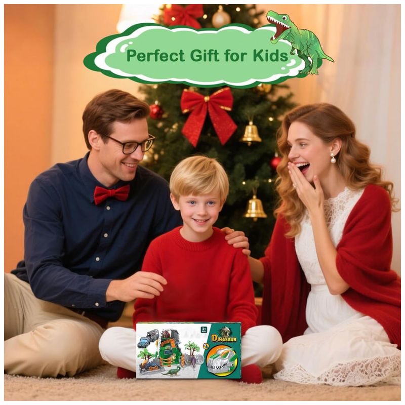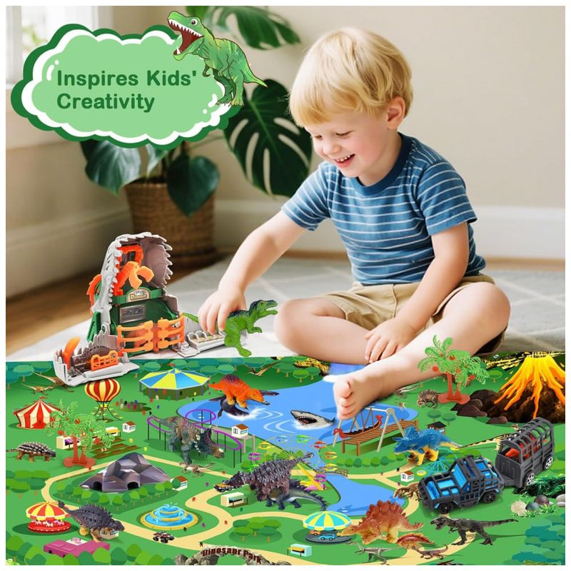 O Conjunto Completo de Dinossauros inclui 12 figuras realistas de dinossauros, uma cabeça de dinossauro removível que se transforma em um cenário, um caminhão de transporte de 2 partes, um mapa do parque dos dinossauros e 2 árvores. Cada dinossauro é colorido, detalhado e de espécies variadas, tornando este conjunto de brinquedos de dinossauro perfeito para estimular a imaginação das crianças. Crie seu Próprio Mundo de Dinossauros: as crianças podem usar a cabeça de dinossauro removível e o mapa para criar sua própria aventura pré-histórica. Esta configuração interativa dá vida à terra dos dinossauros, incentivando a criatividade, narração de histórias e brincadeiras imaginativas. Diversão Educacional: as 12 figuras realistas de dinossauros ajudam as crianças a aprender nomes, formas e características de dinossauros enquanto brincam. Esta abordagem de aprender brincando melhora a memória e o conhecimento, tornando-o um brinquedo educativo ideal para as crianças. Seguro e Durável: Feito com materiais premium, não tóxicos e duráveis, com bordas lisas e arredondadas para uma experiência de brincar segura. Em conformidade com os padrões de segurança de brinquedos infantis, garantindo que as crianças possam desfrutar de horas de diversão sem preocupações. Presente Perfeito para Qualquer Ocasião: Ótimo para aniversários, Natal, Páscoa, Halloween, Ano Novo, festas com tema de dinossauro, decorações de bolo ou como item de coleção. Adequado para meninos e meninas a partir de 3 anos.