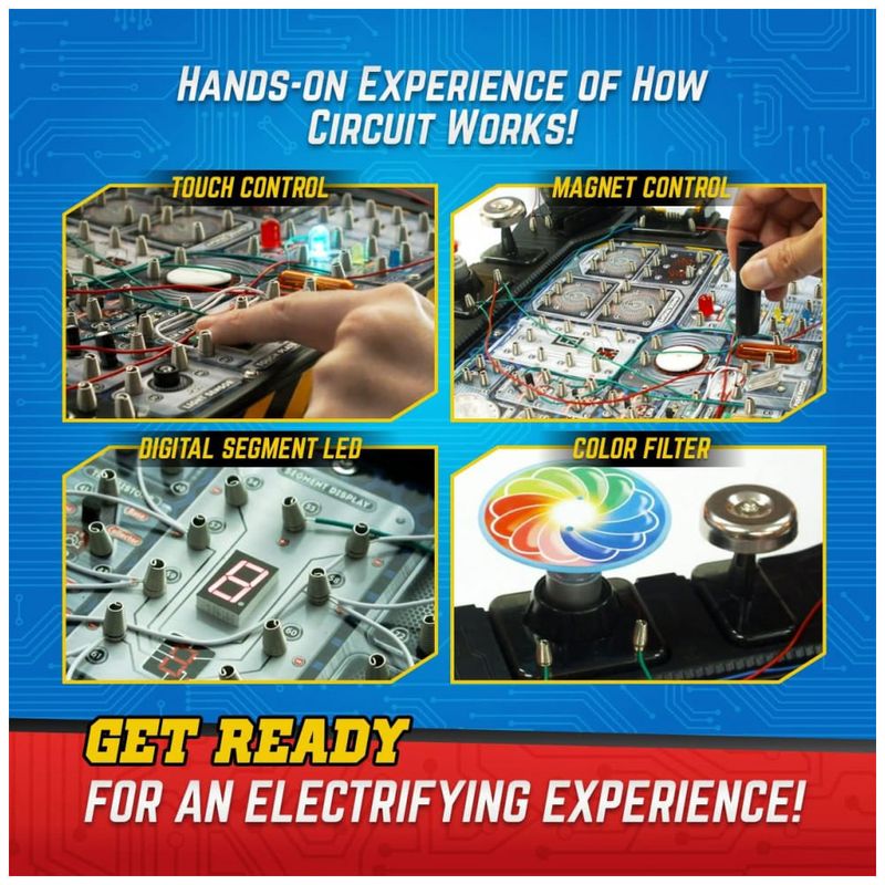 CRIE SEUS PRÓPRIOS CIRCUITOS Seu aluno ou filho adora aprender sobre ciência, física, engenharia mecânica, estrutural e elétrica Este brinquedo para placa de circuito eletrônico Playz Starter oferece às crianças a chance de explorar como uma variedade de eletrônicos funciona, incluindo luzes, sons, magnetismo e até rádios Meninos e meninas podem aprender a conectar, construir e projetar mais de 25 experimentos eletrônicos emocionantes para meninos e meninas