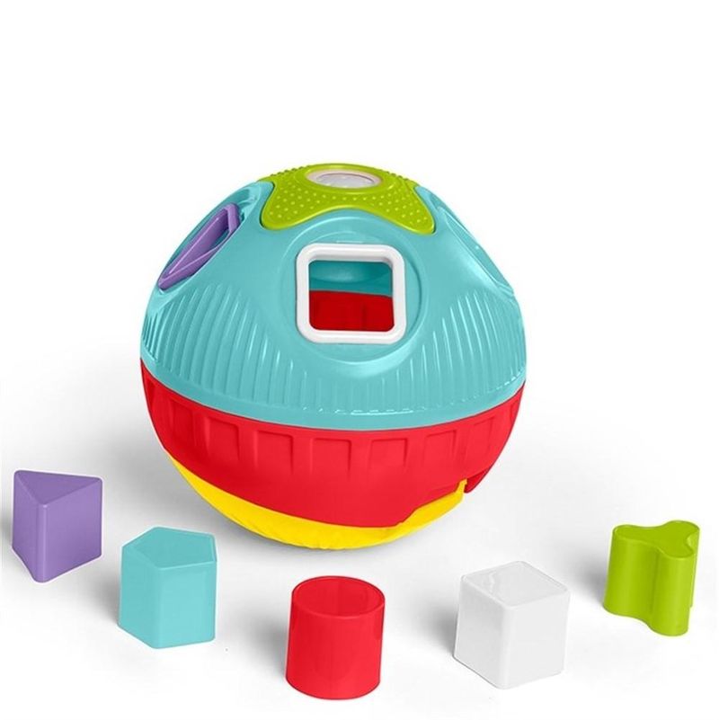 A Fun Ball vem com cinco pecinhas didáticas em diferentes formatos para brincar de encaixar.