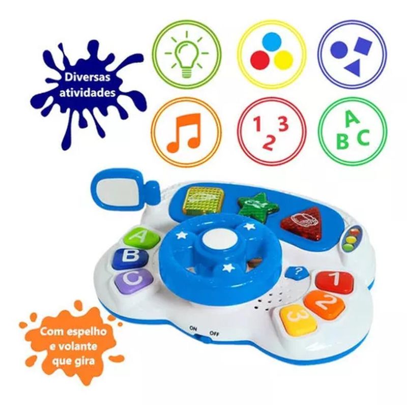 Aviso: Imagens meramente ilustrativas!! O Volante Bibi Baby é super legal, ele gira de verdade! Aprenda letras, números, cores, formas e os meios de transporte. Contém som, luz e música. Divirta-se com o joguinho de perguntas ?Onde está??. Disponível na cor azul. Contém: 1 brinquedo volante Bibi Baby IDADE RECOMENDADA: Acima de 18 meses MARCA: Dm Toys OUTRAS INFORMAÇÕES: Com luz: Sim Com som: Sim Com música: Sim Utiliza 3 pilhas "AA" (não incluídas) Medidas (C x L x H): 21 cm x 16 cm x 13 cm Composição: PP